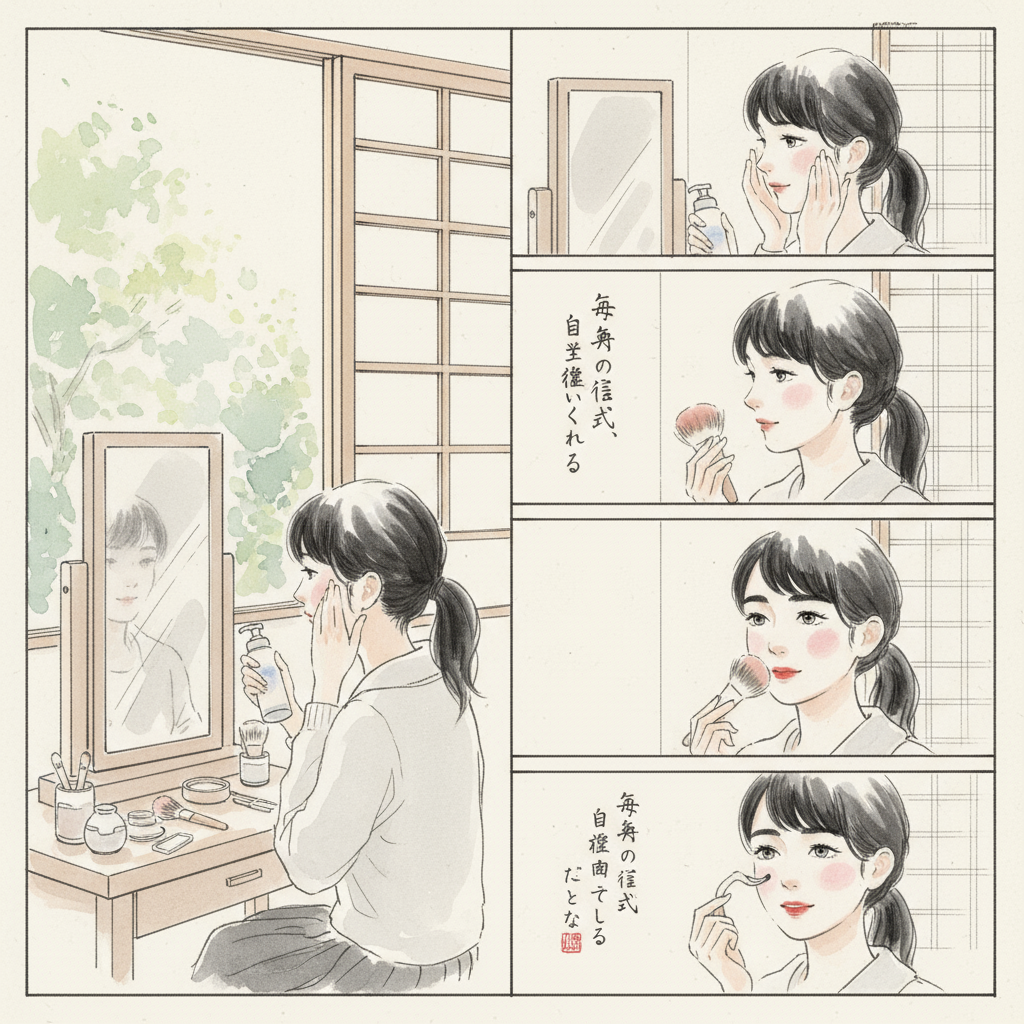メイクは私にとって、単なる化粧品を顔に乗せる作業ではありません。新しい一日への準備であり、自分自身との大切な約束の時間。そして何より、もっと輝きたいという気持ちを叶えてくれる、特別な魔法なのです。