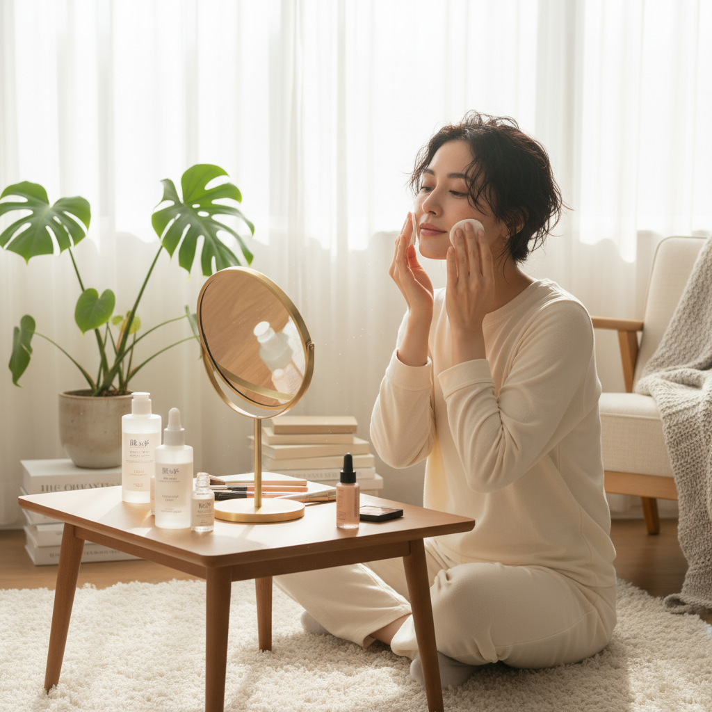 休日の朝、ゆっくりと目覚めた私の部屋に、柔らかな陽の光が差し込んでいます。平日の慌ただしさから解放された今日は、自分のためだけの特別な時間。心地よい音楽を流しながら、お気に入りのアロマディフューザーから漂うラベンダーの香りに包まれて、ゆったりとしたペースでスキンケアとメイクを始めることにしました。