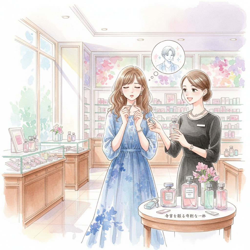 香水のテスター瓶を手に取っては手首に吹きかけ、鼻を近づけてはため息をつく。もう何本目だろう。店員さんの視線が少し冷たくなってきた気がするけど、気のせいってことにしておく。だって今日は失敗できないんだよね。会社の先輩が主催するホームパーティーで、例の彼も来るって聞いちゃったから。