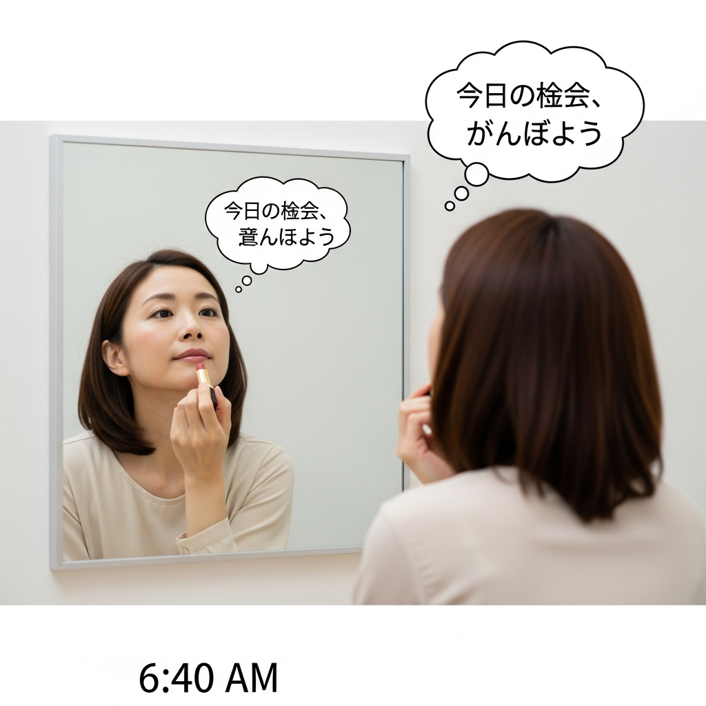 仕上げにリップを引く。鏡の中の自分が、少し変わった。目が、前を向いている。