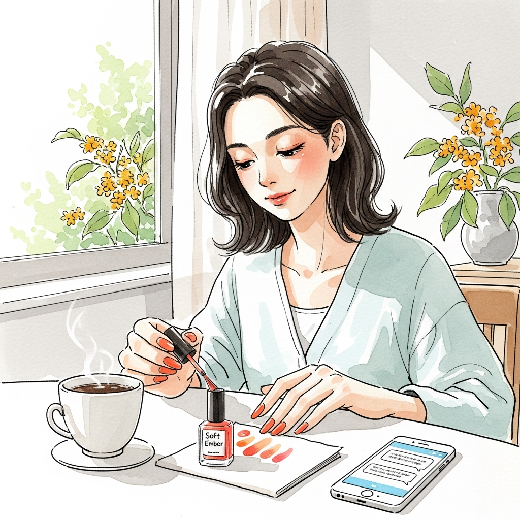 起き抜けにコーヒーを淹れて、ソファに座ったとき、ふと視界の端にネイルポリッシュの小瓶が映った。先週、駅近くの小さなコスメショップ「ルミエール・ボーテ」で一目惚れして買ったやつ。テラコッタとローズが混ざったような、名前のついていない色。ラベルには「#107 Soft Ember」とだけ書いてあった。