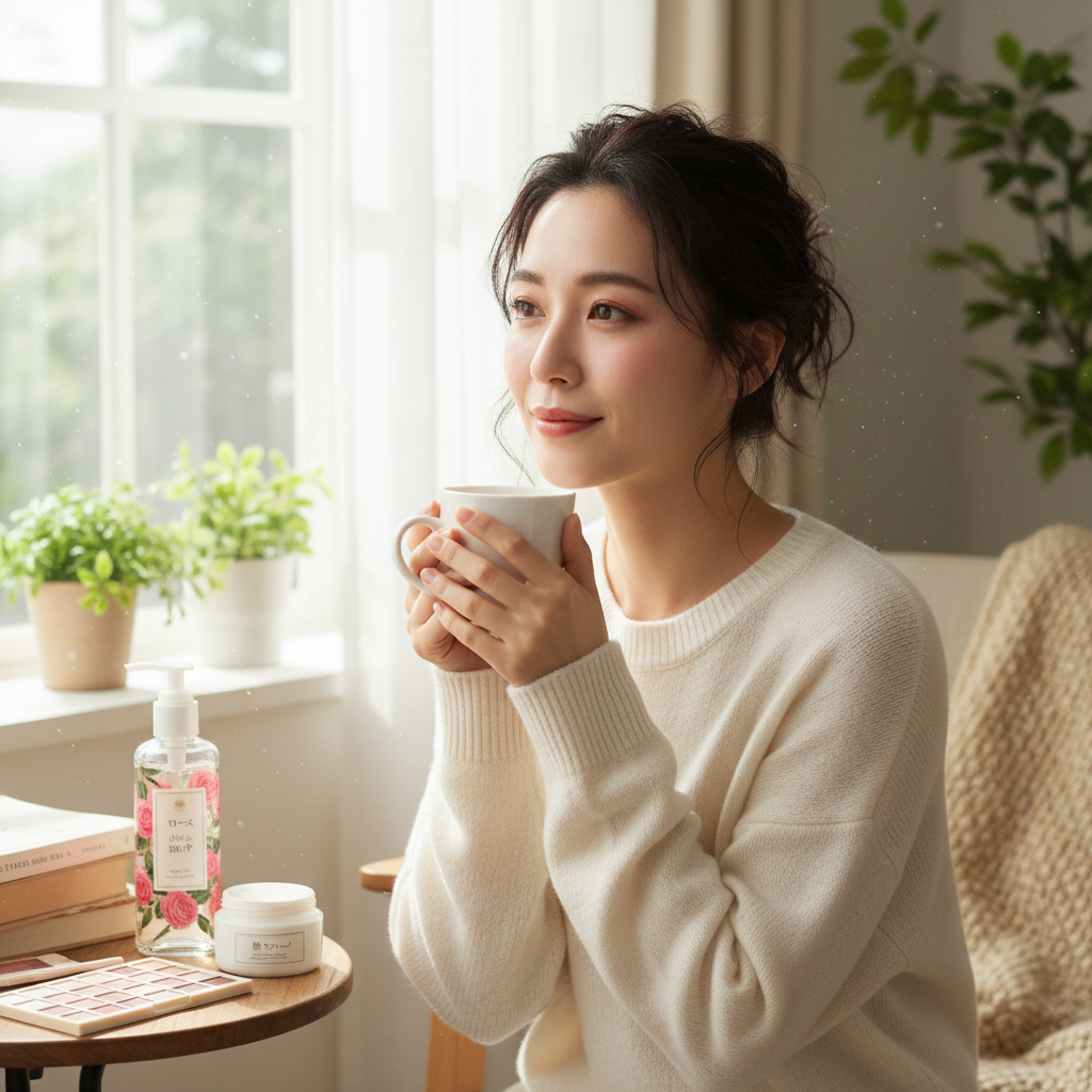 ソファに座り、コーヒーカップを両手で包む。温かさが手のひらに伝わってくる。ふと、自然派の化粧をするということは、自分の素の状態を受け入れることなのかもしれないと思った。隠すのではなく、活かす。足すのではなく、整える。そんな感覚が、今の私には心地よかった。