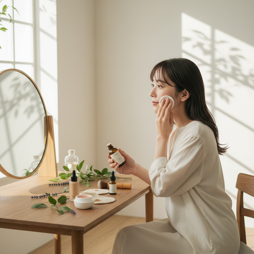 朝のやわらかな光が窓から差し込むと、今日が待ちに待った休日であることを思い出す。平日の忙しさから解放され、誰かのためではなく、自分のためだけに時間を使える贅沢な一日。そんな特別な日の朝は、いつもとは違う気持ちで鏡の前に座る。今日は自然派コスメで、ゆっくりと丁寧に自分を整える時間を楽しもうと決めていた。