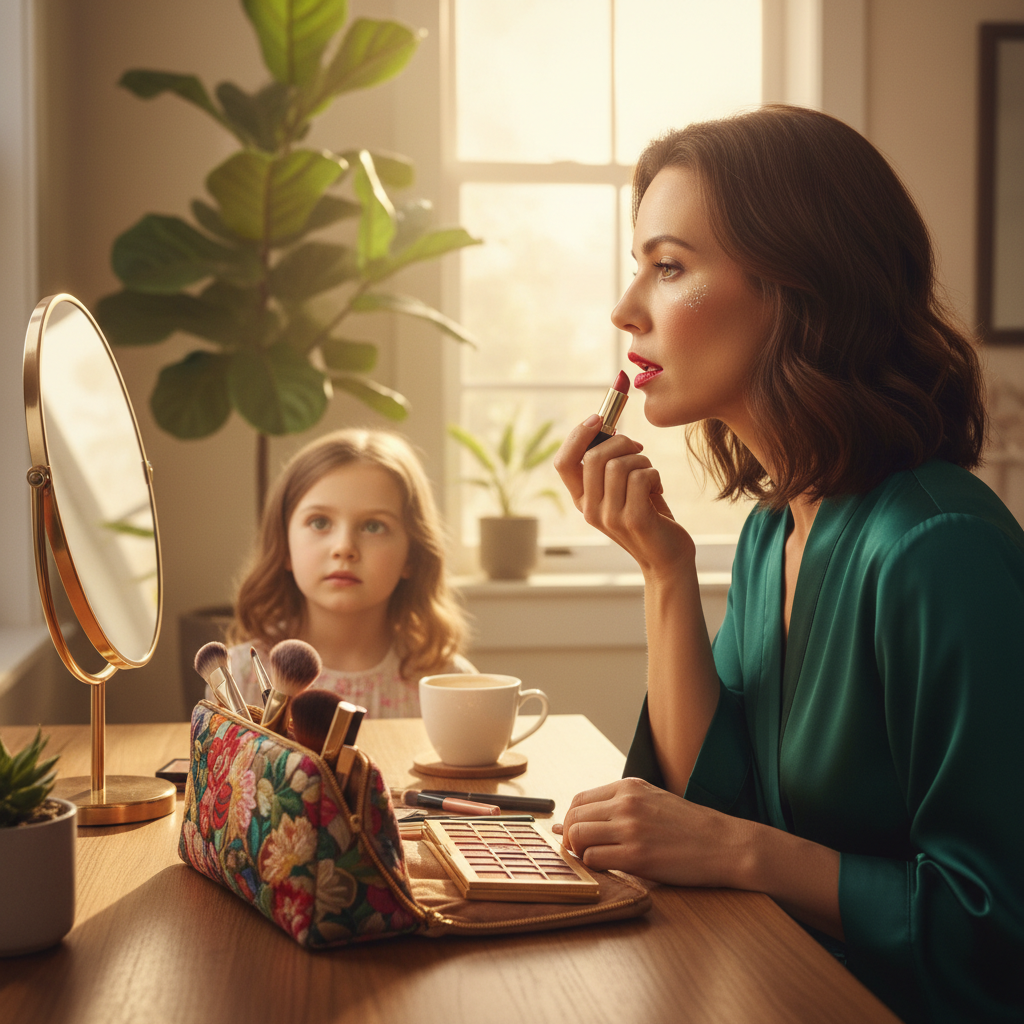 ふと、子どもの頃のことを思い出す。母が出かける前に鏡の前で化粧をしていた姿を、私はいつも横で見ていた。当時の私には、化粧をするという行為が魔法のように見えた。母はいつも、口紅を塗り終えると少しだけ微笑んで、「よし」と小さく呟いていた。あれは、自分自身に向けた合図だったのかもしれない。今の私も、同じことをしている。