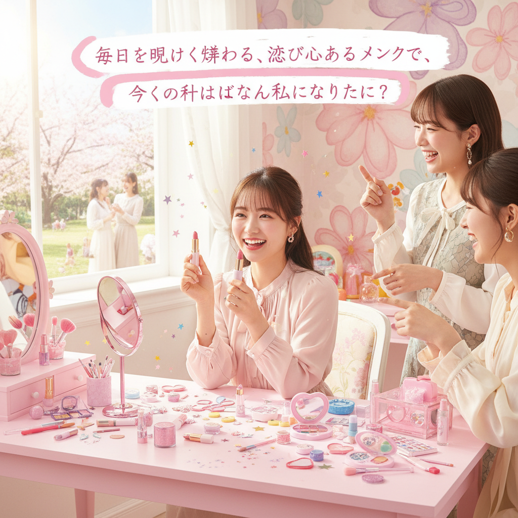 今日も朝、ドレッサーの前に座りました。窓から差し込む太陽の光が、コスメのパッケージをキラキラと照らしています。さあ、今日はどんな自分と遊ぼうか。公園で友人たちと過ごした、あの自由で明るい時間を思い出しながら、私は今日も楽しくコスメを選びます。メイクは遊びであり、自分自身との対話であり、毎日を輝かせる魔法なのですから。