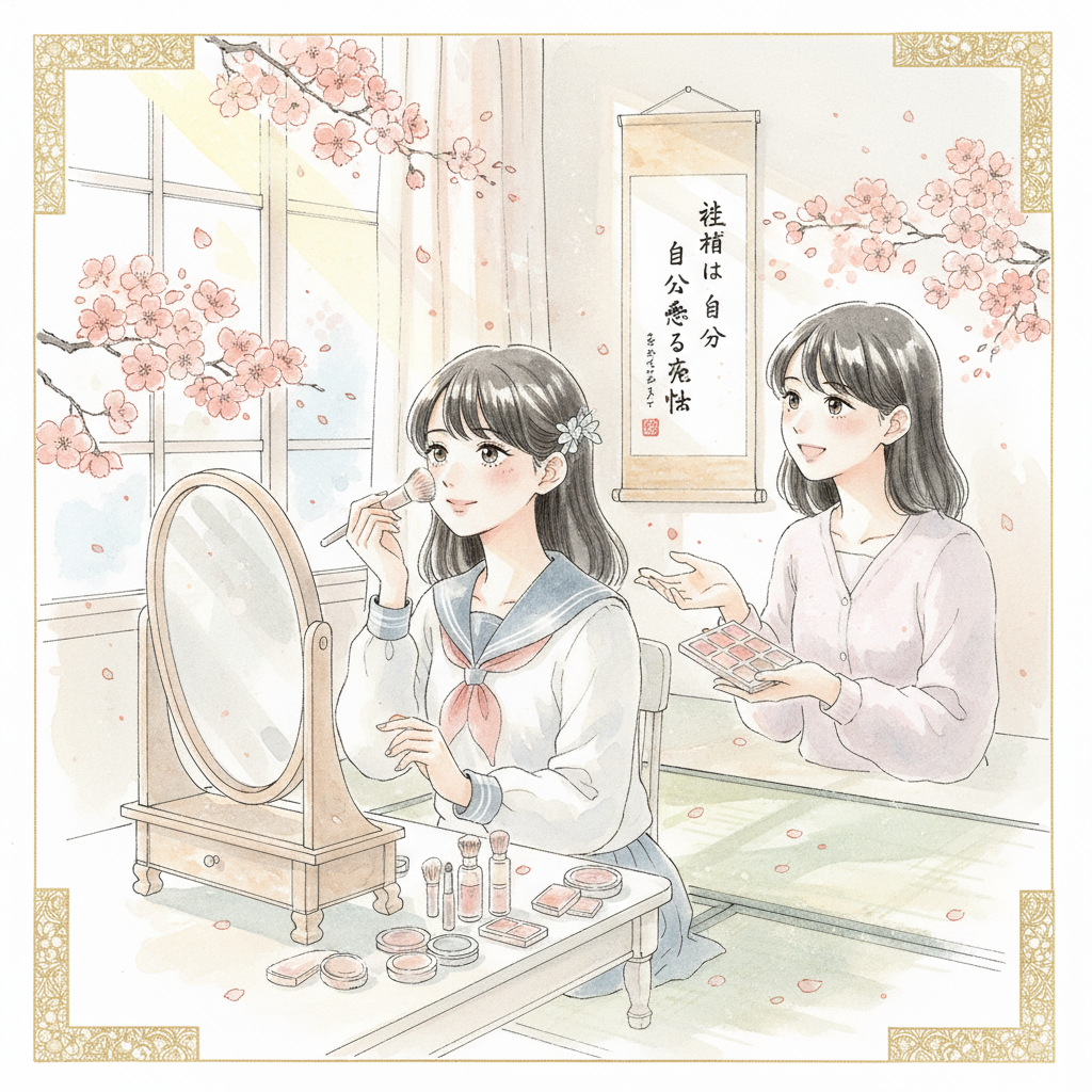 朝の光が差し込む部屋で、彼女は鏡の前に座った。制服のブラウスに袖を通し、髪を整え、そして小さなポーチからコスメを取り出す。女子高生の朝は、いつもこの静かな時間から始まる。メイクは力。それは彼女が最近気づいた、小さくて大きな真実だった。