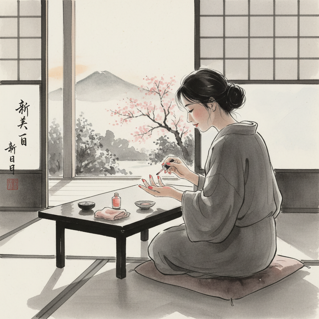 朝の光がまだ柔らかい時間帯に、私はテーブルの前に座っていた。窓の外では春先の風が吹いていて、カーテンが少しだけ揺れている。今日は何だか妙に元気で、理由もなくワクワクしている。こういう日は、何かを始めたくなる。そうだ、ネイルを塗ろう。そう思い立って、引き出しの奥から小さなボトルを取り出した。