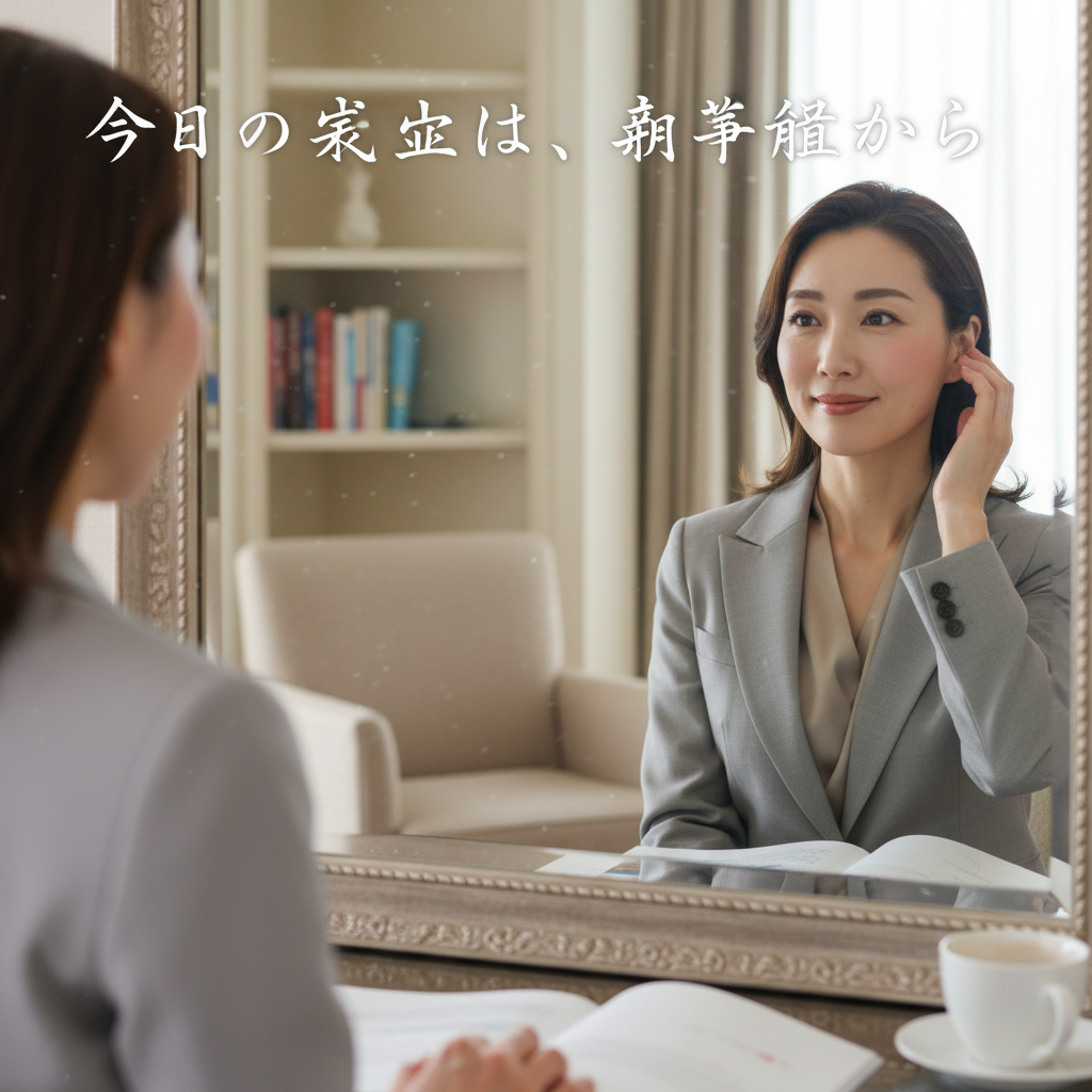 洗面所の鏡の前に立つと、蛍光灯の白い光が容赦なく顔を照らしてくる。まだ目が腫れぼったい。昨夜、企画書の最終チェックをしていたら日付が変わっていて、結局3時間しか寝ていない計算になる。でも今日は部長と取引先の役員が同席する会議がある。プレゼンは後輩に任せたけれど、私も同席する以上、それなりの顔で臨まないと。