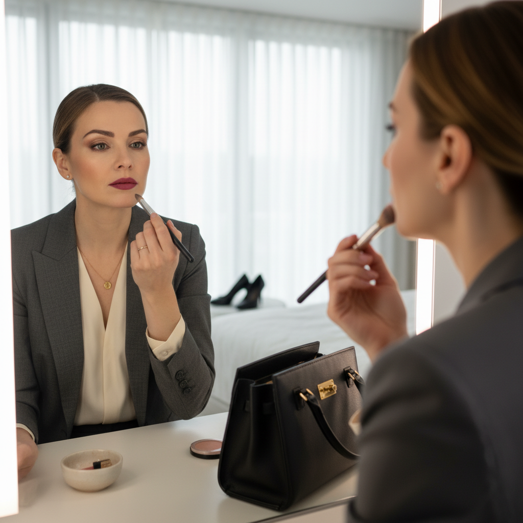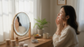 化粧って不思議なもので、ただ色を乗せているだけなのに、自分の中のスイッチが入る瞬間がある。ベースメイクを丁寧に仕上げながら、昨夜準備した資料の内容を頭の中で反芻している。ファンデーションのパフが肌に触れる感触が、なんだか儀式みたいで落ち着く。