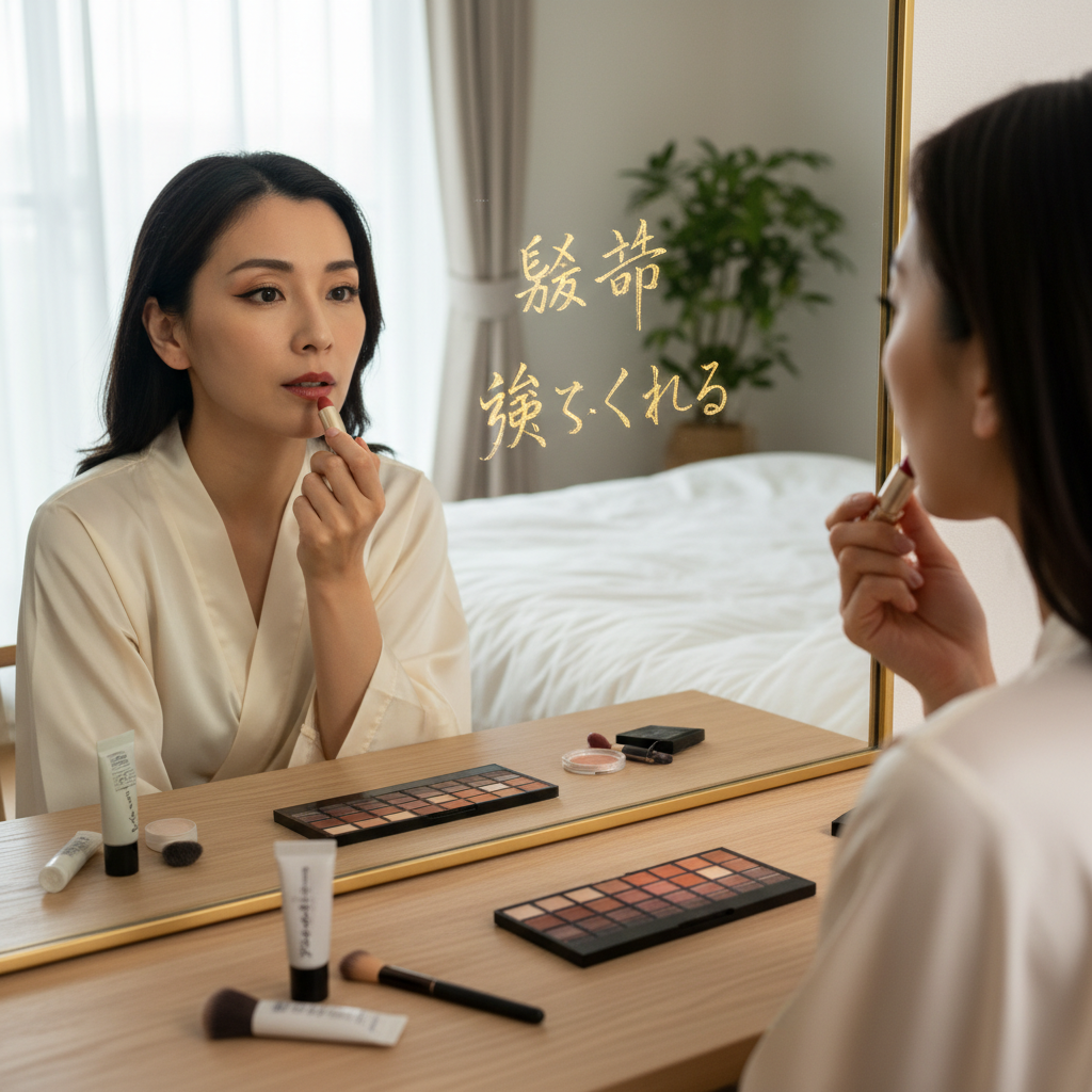 洗面所の蛍光灯が妙に白くて、鏡に映る自分の顔がやけに心もとなく見える。今日は例の会議がある。部長と先方の役員が同席するやつ。プレゼン資料は完璧に仕上げたつもりだけど、問題は私の見た目だ。正直、普段はリップクリームとパウダーくらいしか使わない人間なんだけど、今日ばかりはそうもいかない。