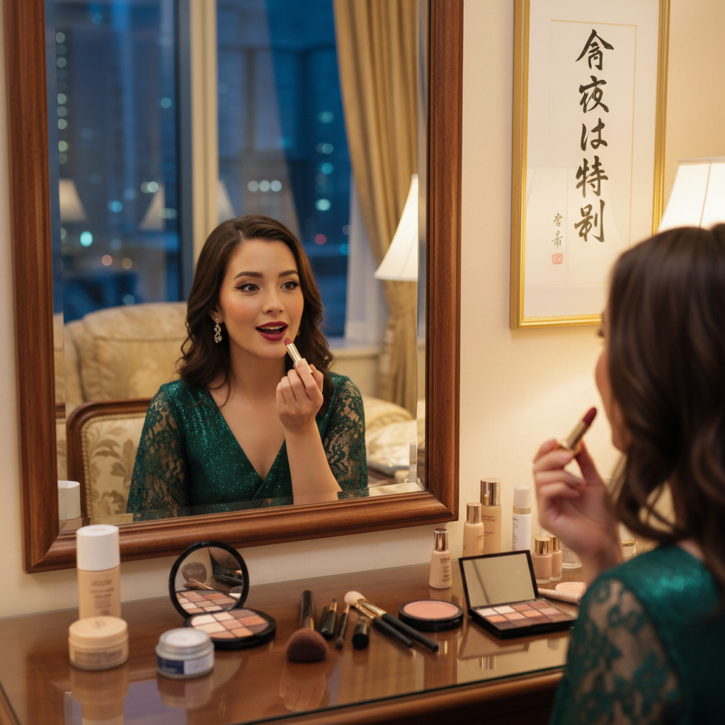 鏡の前に座ると、いつもとは違う自分に出会える予感がする。今夜は特別なパーティー。久しぶりに友人たちと集まる場所には、きっと新しい出会いも待っているだろう。そんな期待を胸に、私はゆっくりとコスメポーチのファスナーを開けた。