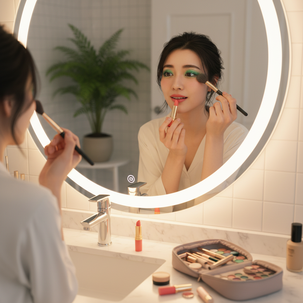 洗面所の窓から、外の街灯が見える。もう暗くなってて、どこかで車のクラクションが鳴ってる。パーティーは八時スタートだから、そろそろ出ないと遅刻する。でもあと五分だけ、この鏡の前にいたい気がする。完成した顔を眺めながら、今日会う誰かのことを想像する。どんな人がいるんだろう。どんな話をするんだろう。